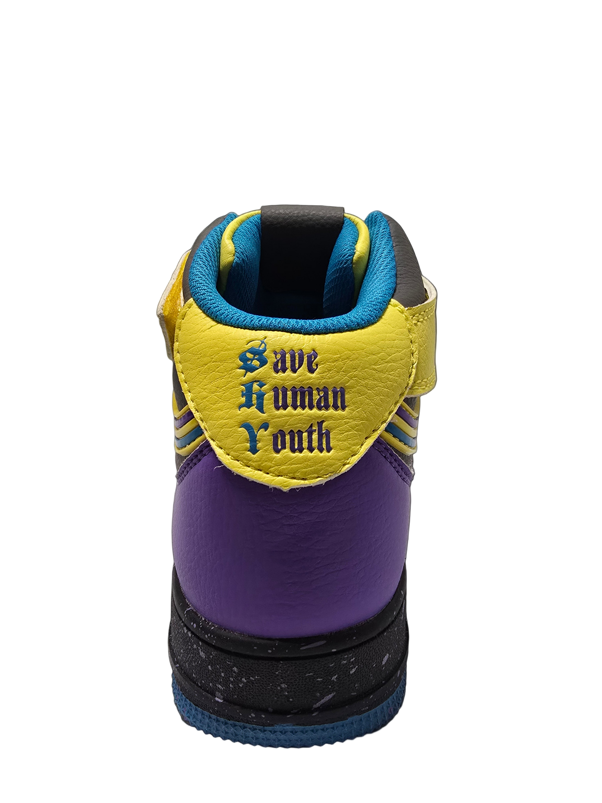 hi top sneaker made from leather and mesh to provide sturdiness and breathe ability