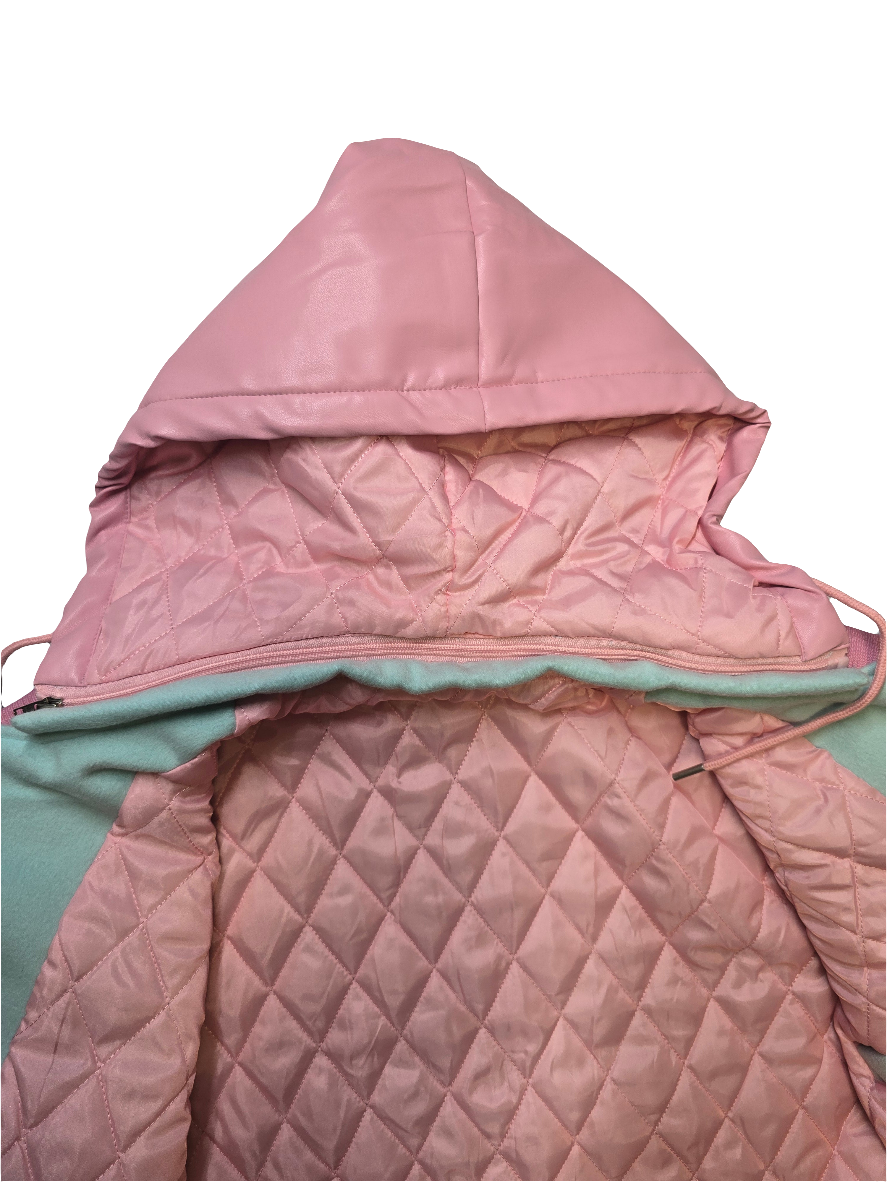 Embroidered Vegan leather and genuine wool with quilted inside and disatchable hood