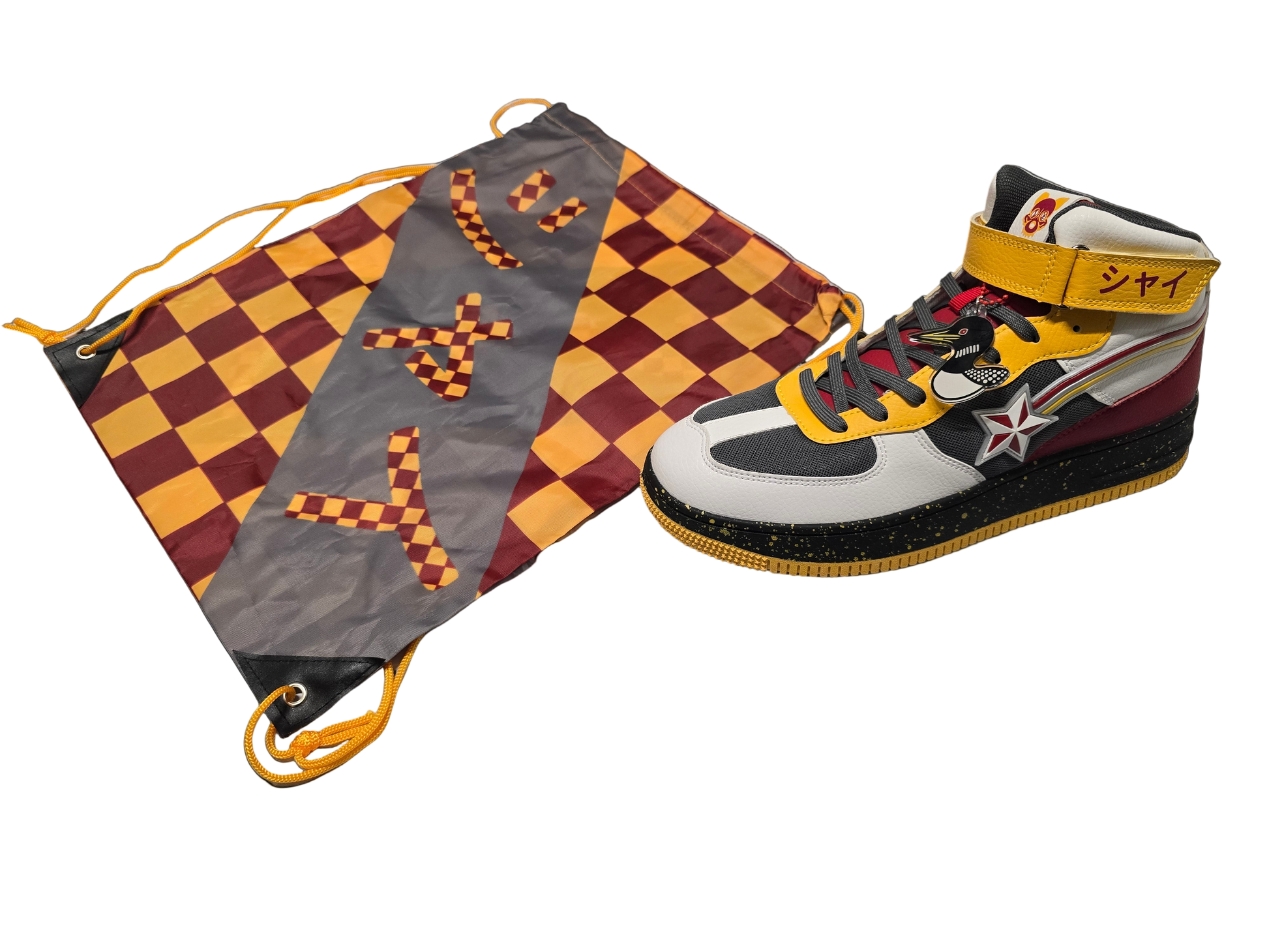 Hi top sneaker made from leather and mesh to provide sturdiness and breathe ability